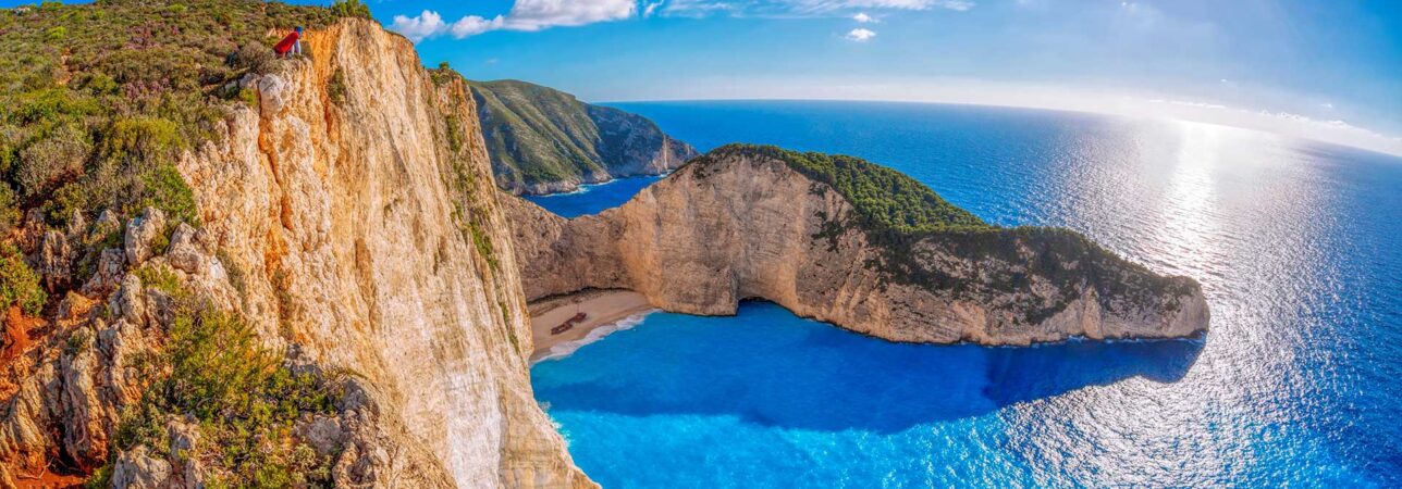 Har du någonsin sett ett vykort från Zakynthos, då var det förmodligen en bild av Shipwreck Bay. Den fantastiska viken är öns största landmärke och absolut mest besökta sevärdhet. Båten kan upplevas från land eller till havs med någon av de många båtutflykterna som avgår från södra kustens semesterorter. De robusta bergväggarna står lodrätt ner i det turkosa havet och ramar in den kritvita stranden. Vraket och är verkligen en fantastisk syn som definitivt är värd att uppleva under din semester på Zakynthos. Historien om det populära landmärket börjar 1980, då ett fraktfartyg försökte att fly undan den grekiska flottan på jakt efter smugglare. Fartyget gick på grund i den grunda viken, medan smuggelvaror varor i form av alkohol och cigaretter hamnade i fiskenät runt om på Zakynthos – till glädje för de lokala fiskarna.