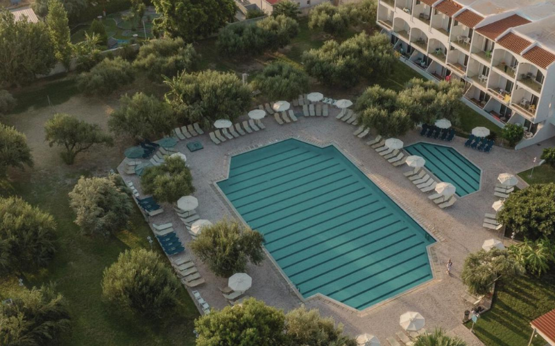 I lugna Kolymbia på Rhodos hittar du ett hotell som passar både familjer och par. All inclusive ingår när du bokar detta hotell, så du kan fokusera på semester från första dagen. Den rofyllda känslan fortsätter vid poolområdet, som ramas in av en grön olivlund. En plats som är perfekt för lata dagar med bad, sol och något gott att dricka inom räckhåll.