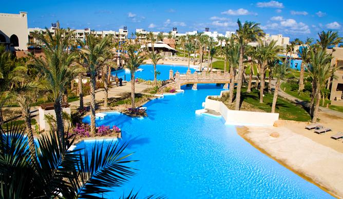 Låt dig skämmas bort på det eleganta och storslagna Hotel Albatros Sands Port Ghalib. Med en vidsträckt privat strand precis utanför dörren, utmärkta restauranger, ett tropiskt badparadis och ett underbart wellnesscenter kommer du att omges av lyx och komfort. Det lyxiga och moderna hotellet är byggt med arabiska influenser. I interiören ser du till exempel graciösa valv, färgglada kuddar och flera ställen där du kan röka shisha (vattenpipa). De bekväma rummen återspeglar också denna stil. De är också utrustade med alla möjliga trevliga faciliteter, som minibar, TV och balkong eller terrass med sittmöbler. Ett trevligt inslag vid poolen är de två rutschkanorna och en lazy river. Hisnande utsikt över det kristallblå havet, mjukt vajande palmer och en grandios saltvattenpool förvandlar den lummiga trädgården till ett tropiskt paradis. Den gyllene privata stranden är också en fin plats. Här kan man lata sig eller ta sig ut i vattnet via en brygga för att se vackra korallrev och färgglada fiskar.