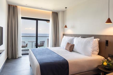 Valmar Corfu Hotel är ett 5-stjärnigt hotell på Korfu som har totalrenoverats och erbjuder en lyxig upplevelse med ett perfekt läge vid stranden. Hotellet ligger inbäddad i en frodig bakgrund av tall toppade kullar, palmer och cypresser och bjuder på en vacker utsikt över Joniska havet. Här kommer du bo i eleganta och välutrustade rum som kombinerar modern komfort med autentisk grekisk charm. Varje rum är designat med omsorg för att skapa en oas av lugn och trivsel. Här kan du starta din morgon med att ta med dig din strandhandduk och ta några steg ner till stranden. Välj din favoritplats för dagen och njut av en fin sommardag med svalkande bad. Med två pooler varav en vuxenpool väntar avkoppling med spektakulär utsikt. För en uppfriskande drink finns det flera barer, bland annat en takbar med panoramautsikt och en mysig strandbar. Valmar Corfu Hotel erbjuder också ett omfattande spa- och wellnessområde för den ultimata avkopplingen med lugn och ro. Och för den som vill hålla sig aktiv finns det också ett gym där man kan underhålla sina muskler. Hotellet erbjuder flertalet restauranger som serverar vällagad mat och god dryck. Du kan njuta av läckra rätter i buffétrestaurangen och i medelhavsrestaurangen.