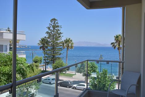 Lägenhetshotell med pool Litet lägenhetshotell i lugna omgivningar av Kos Stad. Här spenderar du sköna dagar vid hotellets poolområde som ligger högt och bjuder på en sagolik utsikt över kusten och havet. Du bor med självhushåll i trevliga lägenheter och kan själv bestämma vad och när du vill äta. Njut av nöjeslivet i Kos stad när solen gått ner för dagen. Strand & pool Poolområdet ligger på första våningen med panoramavyer över havet. På träterrassen hittar du pool, separat barnpool och jacuzzi. Intill poolen ligger poolbaren som serverar svalkande drycker och lättare rätter i solskenet. Koppla av på en solstol med en bra bok eller njut av något gott i glaset och den fantastiska utsikten. Till den närmaste stranden har du ca 300 meter att promenera. Här är stranden fylld av grovkornig sand där solstolar och parasoller står uppradade, om du inte hellre vill lägga dig på handduken. Ovanför stranden eller på andra sidan vägen finns tavernor och barer om du blir sugen på något under dagen. Trafikerad väg måste korsas. Stränderna öster om Kos stad är inte riktigt så barnvänliga, de sluttar rätt brant ut mot havet och stenar förekommer. Vill du spendera en heldag på barnvänlig sandstrand tar du dig bäst västerut mot Lambi Beach. Där finns många ställen att välja på och det finns gott om restauranger och strandbarer. Mat & dryck I poolbaren på första våningen serveras enklare rätter och dryck under dagen. Du har ett pentry i lägenheten om du vill fixa din egen mat. Fyll kylskåpet med lokala specialiteter och njut av god mat och dryck på balkongen innan du beger dig ut på stan. Till restauranger och barer i Kos Stad kan du promenera. Omgivningarna I Kos stad finns ett stort utbud av restauranger, barer och kaféer. Här äter du traditionellt grekiskt men även internationellt som mexikanskt och sushi. Nöjeslivet är mer sofistikerat än förr om åren och du dricker drinkar på trevliga loungebarer med skön musik. För de yngre finns bargatan, Nafklirou med många barer och klubbar.