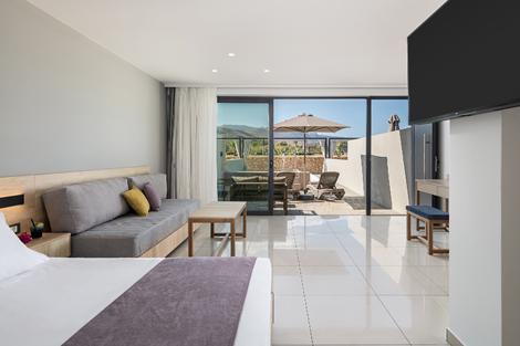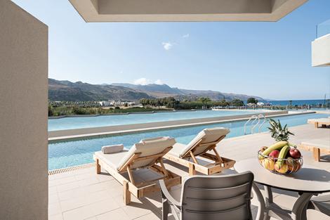 Galini Palace Hotel är ett strandnära boende i Kolymbari där du hittar allt som behövs för en härlig och avslappnad semesterupplevelse. Hotellets hjärta är det väl tilltagna poolområdet med möjlighet till uppfriskande bad både för stora och små. Här bor du i trivsamma rum med möjlighet att boka privat pool. Hotellet har två härliga poolområden – det större vid huvudbyggnaden med två pooler, och ett mindre, mer avskilt område vid byggnaderna på andra sidan gatan. Här kan du njuta av långa, avslappnande dagar fyllda med både lek och avkoppling. I hotellets spaavdelning finns även en rymlig inomhuspool. Stranden, som består av sand, grus och vid vattnet klappersten, erbjuder solstolar och parasoller för att koppla av och ta in de vackra vyerna. Frukost och middag äter du i hotellets restaurang i skön atmosfär. Här kan du njuta av genuint grekisk mat eller varför inte någon annan medelhavsinspirerad maträtt med något svalkande i glaset vid sidan av.