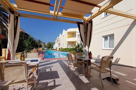 Lambrinos ligger som en pärla mitt i Platanias. Hotellet är byggt som en långsmal byggnad med riktning mot stranden. Med sina 16 lägenheter ger hotellet en familjär och välkomnande känsla. Ett boende för dig som vill bo centralt i Platanias med närhet till bad, god mat och allt annat som detta område erbjuder. Hotellet har en liten gemytlig pool med ett litet intilliggande grönområde. Här finns solstolar och parasoller för din maximala bekvämlighet. Vid poolens ena kortända finns en avskild barndel. Ett stenkast från hotellet och du är nere på stranden. Sand, grus och klappersten är det dominerande underlaget. Här är gott om uthyrare av solstolar och parasoller. En lunch i skuggan är lätt att hitta på någon av de många restauranger som finns utsprida utmed strandlinjen.