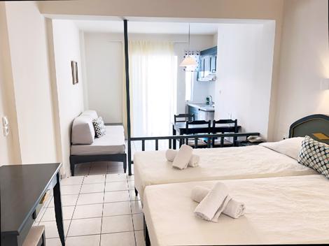 Enkla och trivsamma lägenheter Melitti Studios & Apartments ligger på en lugn gata några steg från den vackra stranden, ett idealiskt läge. Lägenheterna och studiorna är enkelt men trevligt inredda och har alla balkong och pentry. I omedelbar närhet hittar du gott om restauranger för en typisk grekisk måltid. Det är den perfekta platsen för att njuta av den grekiska solen, den avslappnade atmosfären i området och lokalbefolkningens gästfrihet. Strand & pool Sandstranden ligger endast 50 meter ifrån ditt boende och här finns det solstolar med parasoll att hyra för dagen. Väljer du att ”stanna hemma” erbjuder Melitti Studios & Apartments ett litet och trevligt poolområdet där du kan njuta av ett svalkande dopp och avkoppling på en solstol. Mat & dryck Inga måltider ingår. Omgivningarna Inne i Rethymnon stad finns ett myller av restauranger, tavernor, barer och kaféer. Du kan äta både internationellt och traditionellt grekiskt, prova Kleftiko, en väldoftande lammköttsgryta eller lammkotletter med fårost.