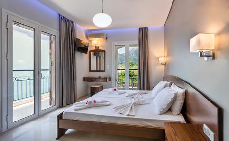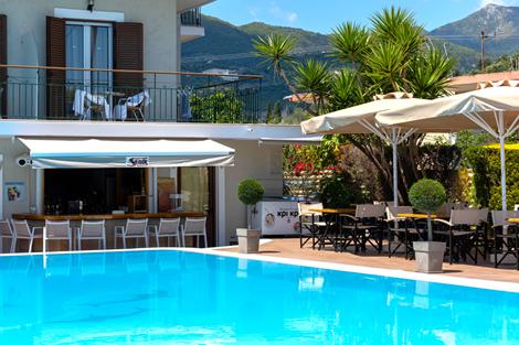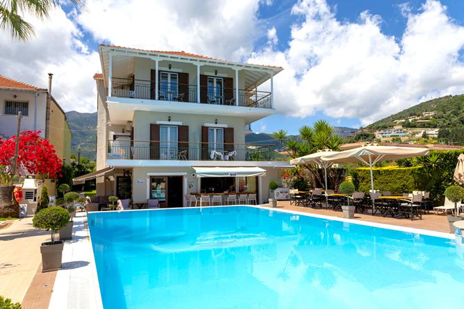 Sands Studio's är platsen för dig som vill ha det enkelt, lugnt och nära allt. Boendet ligger i Nidri och är ett perfekt val för par, soloresenärer och mindre sällskap som längtar efter en bekymmersfri semester. Här bor du i ett välskött, personligt boende där värden Laertis tar hand om dig som om du vore familj. Med strand, restauranger och butiker bara några minuter bort, har du friheten att njuta precis som du vill – i lugn och ro eller bland folkliv vid hamnen. Börja dagen med en kort promenad till stranden och njut av solen och havet. När du vill svalka dig utan att lämna hotellet, väntar poolen i trädgården – en omtyckt samlingspunkt med bekväma solstolar och en liten bar. Här kan du koppla av med en sval dryck i handen som du beställer från poolbaren medans du njuter av bergen eller trädgårdens grönska.