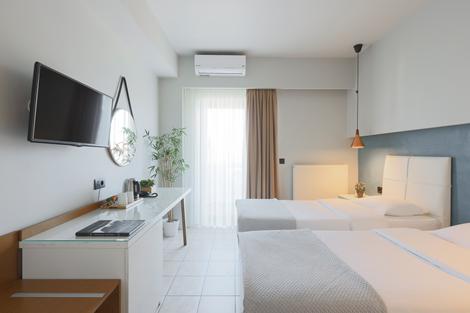 San Panteleimon Beach Hotel ligger i centrala Pieria-Olympus Riviera, bara några meter från den mjuka sandstranden. Hotellets lugna läge, kombinerat med all inclusive, gör det perfekt för par eller vänner som vill njuta av bekväm avkoppling. Hotellets stil är modern och ljus, med en grekisk touch i interiören. Rummen är bekvämt möblerade och har balkong eller terrass. Stranden ligger bara några meter bort och bjuder på mjuk sand och stilla hav. Perfekt för lugna bad eller långa promenader. Föredrar du poolhäng finns en liten, inbjudande pool för svalkande dopp. I restaurangen väntar bufféer med något för alla smaker – från grekiska klassiker till internationella favoriter. I baren kan du beställa något kallt att dricka, oavsett tid på dagen.