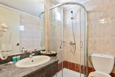 På Rigas i Skopelos stad trivs både familjer och par eftersom hotellet erbjuder en mix av både rum och måltidsprogram där det finns något som passar alla. Centralpunkten för hotellet är poolen där du badar, solar eller sitter i skuggan under ett träd och beställer något svalkande från poolbaren. Vid poolen ligger du och latar dig i skön omgivning, antingen under ett träd eller parasoll. Du väljer antingen en solstol eller så kan du sitta vid ett bord om du vill passa på att äta något från poolbaren samtidigt. Hotellet består av flera byggnader och några av rummen har utsikt mot poolen. Till den närmaste stranden, som ligger vid sidan av hamnen, är det en promenad på ungefär 400 meter. Från den har du nära till restauranger och caféer när du blir hungrig efter ett salt dopp. Stranden är ganska liten och har grovkornig sand uppblandad med stenar. Det finns solstolar att hyra. Eftersom hamnen ligger bredvid, passerar båtar ganska nära. Den mer kända stranden Stafilos ligger 4 kilometer bort. Det går både badbåtar och bussar från stan till olika stränder på ön. Bussar stannar just intill hotellet.