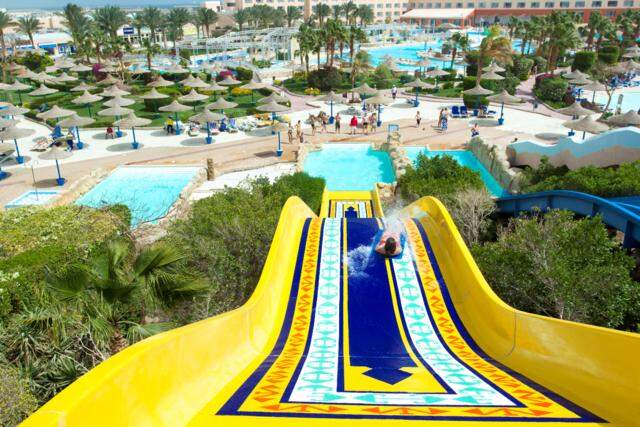 Hotel Titanic Aqua Park Resort hittar den största vattenparken i Hurghada med inte mindre än 30 vattenrutschbanor, en vågbassäng och en ”lazy river”. På