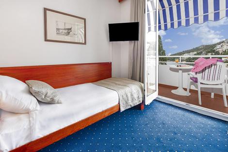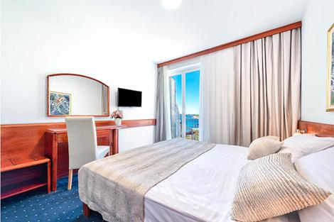 Hotel Komodor är ett mysigt hotell som ligger på halvön Lapad, ca 4 km från den historiska stadskärnan i Dubrovnik. Här bor du ett stenkast från stranden, och vill du ta dig in till centrum kan du snabbt och smidigt ta den lokala bussen som stannar nära hotellet. Hotellet har ett litet men mysig poolområde med solstolar och parasoller, och under semestern arrangerar underhållningsteamet flera roliga aktiviteter. På Hotel Komodor bor du enkelt inredda rum där du har möjlighet att boka ett med havsutsikt, så att du kan njuta av hotellets vackra läge från ditt rum. Din vistelse på Hotel Komodor inkluderar frukost, och vill du göra semestern ännu mer bekväm har du också möjlighet att boka med halvpension där frukost och middag ingår. Sunweb rekommenderar Hotel Komodor särskilt för vuxna som vill tillbringa semestern i mysig miljö nära stranden.