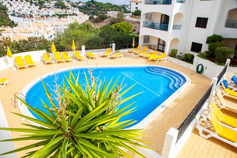 Det mysiga lägenhetsboendet Monte Dourado Apartments ligger ovanför Carvoeiro med fantastisk utsikt över stadens centrum och Atlanten. Här har du både centrum med många barer och restauranger, samt den härliga sandstranden nära till hands. Lägenheterna ligger fördelade i små vitkalkade byggnader, som är sammanlänkade med kullerstensvägar och små trädgårdar. Alla lägenheter är fint och modernt inredda med flera bekvämligheter och rymmer upp till sex personer. Från din balkong kan du njuta av fantastisk utsikt om du väljer att boka ett rum med havsutsikt. Känner du för att vara aktiv under din semester erbjuder Monte Dourado Apartments två tennisbanor. Lägenhetsboendet har hela fem poolområden med pool, barnpool och solstolar. Här kan du koppla av, ta några simtag i poolen för att sedan återgå till din solstol och njuta av solens värmande strålar. Stranden ligger endast 100 m ifrån Monte Dourado Apartments. Inga måltider ingår, men du har goda förutsättningar att tillreda enklare måltider i din lägenhet. Vill du hellre äta ute kan du ta dig till byns centrum består egentligen av två gator, som möts vid ett litet torg bakom stranden. I staden finns ett litet urval av butiker samt massor av bra restauranger och mysiga kaféer. Om du vill ha en snabb översikt över staden kan du ta det lilla turisttåget en rundtur i staden flera gånger om dagen.