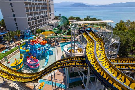 Upplev en fantastisk vistelse vid Egeiska kusten på Duja Didim Hotel. En oas av lyx och avkoppling, där varje detalj är utformad för att göra din vistelse oförglömlig. Här erbjuds en värld av elegans och komfort med välutrustade och smakfullt inredda rum. En härlig sandstrand omger detta moderna förstklassiga hotell som ligger på en liten halvö cirka 5 kilometer från Didim. Det är inte bara på den långa stranden man kan sola och bada, för det kan man naturligtvis också göra vid en av de fyra poolerna. Här finns också tre rutschkanor som erbjuder timmar av skoj för både stora och små! Den mysiga poolbaren finns nära tillhands när törsten gör sig påmind. För den som söker en liten lugnare aktivitet kan ett besök i hotellets wellness-avdelning rekommenderas. Prova på hamam eller unna dig en avslappnande massage. Hotellet har flera restauranger där du kan njuta av kulinariska läckerheter. Á la carte restaurangerna erbjuder allt ifrån fisk och italiensk mat till traditionellt turkiskt! Du kan även avnjuta en läcker cocktail på en av hotellets många barer. I Didim finner du ett bra utbud av restauranger, uteserveringar och caféer. En av de mest charmerande platserna är Altinkum, som betyder "guldstrand" på turkiska. Här kan du promenera längs strandpromenaden och utforska restaurangerna och butikerna. När du vill koppla av från solandet kan du ta en promenad och njuta av en svalkande dryck, en fräsch sallad eller en god måltid innan du återvänder till den gyllene sandstranden.