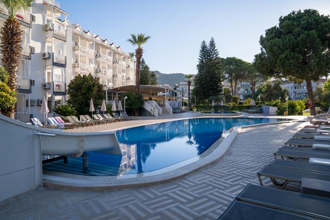 Upplev en bit av turkisk äkthet på Halic Hoteli! Här har du ett boende med genuin turkisk atmosfär nära både strand och allt det staden har att erbjuda. Perfekt läge för en semester fylld av avkoppling och upplevelser. Njut av solen vid en av två fräscha pooler vid hotellområdet, eller ta en kort promenad ner till Marmaris populära och vackra strand för en avkopplande dag vid havet. Halici erbjuder restaurang med smakrika matupplevelser med en genuin touch av Turkiet. Utforska med fördel de närliggande lokala restaurangerna i närheten för ännu mer kulinarisk njutning.