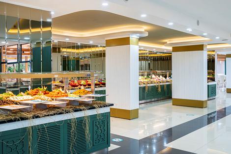 Blue Star Hotel är ett stort och populärt All Inclusive-hotell som ligger i en central men lugn del av Alanya. Här bor du i dubbelrum eller familjerum med modern inredning och god komfort. Detta hotell erbjuder en mängd faciliteter, inklusive en miniklubb och lekplats för barn, samt avkoppling och wellness för de vuxna gästerna. Här finner du två pooler, varav en med vattenrutschkanor, perfekt för roliga vattenaktiviteter. Den vackra Kleopatrastranden ligger cirka 1 km bort och nås enkelt med hotellets strandbuss som kör er till stranden utan kostnad. I hotellets restaurang serveras frukost, lunch och middag i bufféform. Om suget smyger sig på mellan måltiderna serveras snacks. Mellan doppen i poolen eller havet kan du njuta av en svalkande drink från någon av hotellets tre barer.