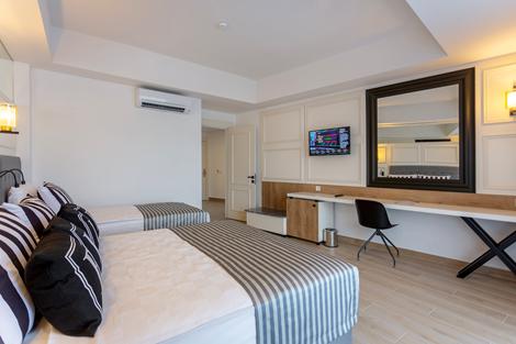 Eftalia Blue är en omsorgsfullt designad pärla vid Turkiets Riviera som slog upp sina dörrar 2024. Här väntar en oslagbar semesterupplevelse med fokus på din komfort. Från ankomsten omfamnas du av lyx, inbjudande pooler, och vänligt bemötande av personalen. Hotellet erbjuder en spektakulär utsikt över Medelhavet och de grönskande trädgårdarna på resorten. Koppla av vid stranden med en uppfriskande cocktail i handen eller ta ett svalkande dopp i den stora poolen. Hotellet har även vattenrutschkanor och en vattenlekplats för de mindre hotellgästerna att leka i. I hotellets huvudrestaurang serveras alla måltider i bufféform. Här radas kulinariska smakupplevelser upp och erbjuder något för alla. När du är mätt och belåten kan du njuta av din favoritdryck medan du blickar ut över det skimrande Medelhavet i en av hotellets barer.