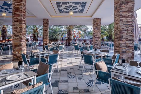 Quattro Beach Spa & Resort är en strålande pärla i utkanten av Konakli, endast 12 km från Alanya. Hotellets design hyllar den Osmanska eran med sin klassiskt eleganta inredning. Vi rekommenderar Quattro Beach Spa & Resort för både vuxna och familjer med barn som vill semestra i bekväma omgivningar vid stranden. Mellan huvudbyggnaden och den lockande stranden breder det stora poolområdet ut sig, komplett med vattenrutschkanor för barn och en avslappnande poolbar. Den gyllene stranden är bara ett stenkast bort, perfekt för avkoppling och sköna bad i det glimmrande havet. En verklig pärla för solälskare. På Quattro Beach Spa & Resort går ingen hungrig. Utöver hotellets bufférestaurang där de tre huvudmåltiderna serveras, ebjuds även tre à-la-carte-restauranger som serverar italienskt, mexikanskt eller färsk fisk. För den som föredrar utsökta bakverk och sötsaker rekommenderas ett besök på hotellets konditori eller varför inte en glass i solen? Behöver du släcka törsten av allt det goda finns det flera barer att hämta din dryck ifrån.