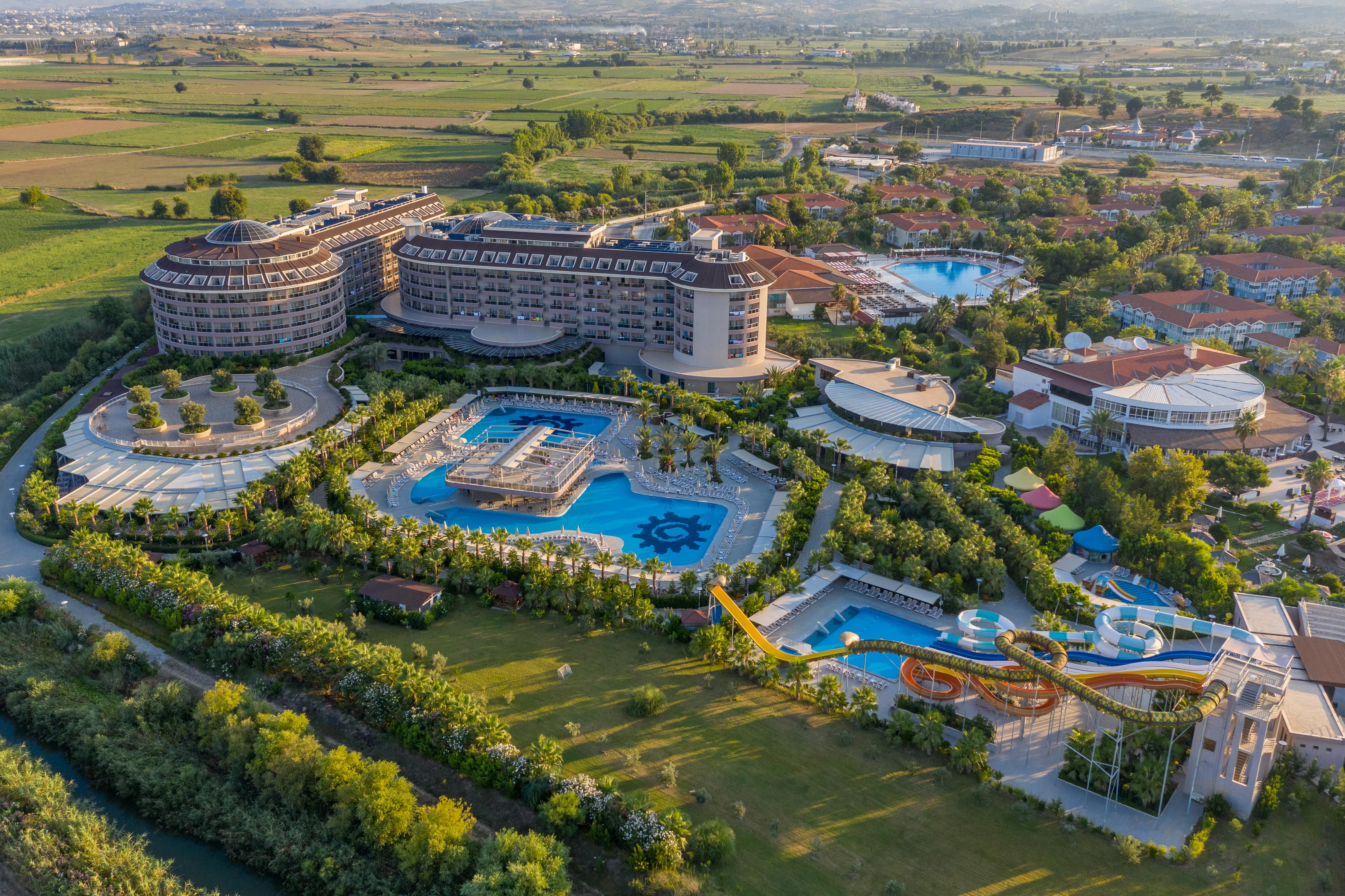 Sunmelia Beach Hotel är ett förstklassigt och familjevänligt hotell som är beläget vid den glittrande kusten i Side. Här kombineras modern komfort med en varm och välkomnande atmosfär för att skapa en oförglömlig och fin semesterupplevelse. Här kan du välja mellan ett brett utbud av stilfullt inredda rum och sviter, alla utrustade med bekvämligheter som luftkonditionering, gratis wifi samt balkong eller terrass. Hotellet ligger direkt på stranden där solstolar med parasoll är inkluderade för hotellets gäster. Svalkande bad och timmar av vattenglädje kan du njuta av vid hotellets omfattande poolområde. Med flera pooler, inklusive en barnpool och en vattenpark med rutschkanor kan du både koppla av och även höja pulsen något. För den ultimata avkopplingen kan du besöka hotellets wellnessavdelning där du kan boka in dig på en hamambehandling eller kanske njuta av en avslappnande massage. För den aktiva lockar vattensporter, beachvolley, bordtennis eller kanske gymmet. Barnen har roligt i barnklubben eller vid barnpoolen med nyfunna vänner. Sunmelia Beach Hotel erbjuder ett imponerande urval av restauranger och barer. Börja dagen med en riklig frukostbuffé, njut av internationella och lokala rätter till lunch och middag, eller unna dig något gott från hotellets à la carte-restauranger. Avsluta kvällen med en drink i någon av de stilfulla barerna.